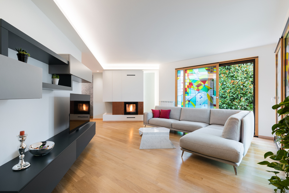 Una linea luminosa Novalux per installazione in controsoffitto che delinea il perimetro delle pareti creando un effetto wall washer. Profilo in cartongesso per Strip LED a incasso che scompare nel cartongesso.