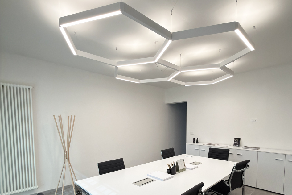 HERO MINI B è un sistema di illuminazione firmato Novalux progettato per soddisfare le esigenze di composizioni irregolari con emissione di luce diretta e indiretta, garantendo un’illuminazione equilibrata e confortevole. La sua versatilità lo rende idoneo a diversi spazi, semplicemente scegliendo il tipo di ottica più adatta all’ambiente: schermo opale per una luce uniforme, micro ottiche UGR<19 per utilizzo su postazioni PC, o spot orientabili per un’illuminazione più mirata o d’accento. Gli speciali giunti sono studiati per unire i profili, creare file continue, esagoni e altre geometrie sorprendenti, aperte o chiuse.