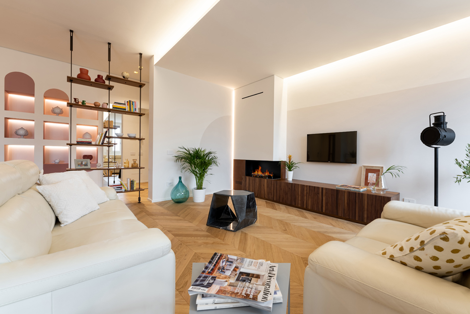 Profilo in cartongesso per Strip LED a incasso che scompare nel cartongesso e crea una linea luminosa perimetrale ad effetto wall washer. Una cascata di luce illumina le pareti in maniera uniforme e ne esalta la trama, i rivestimenti in pietra, o le particolari finiture. L'effetto scenico è garantito.